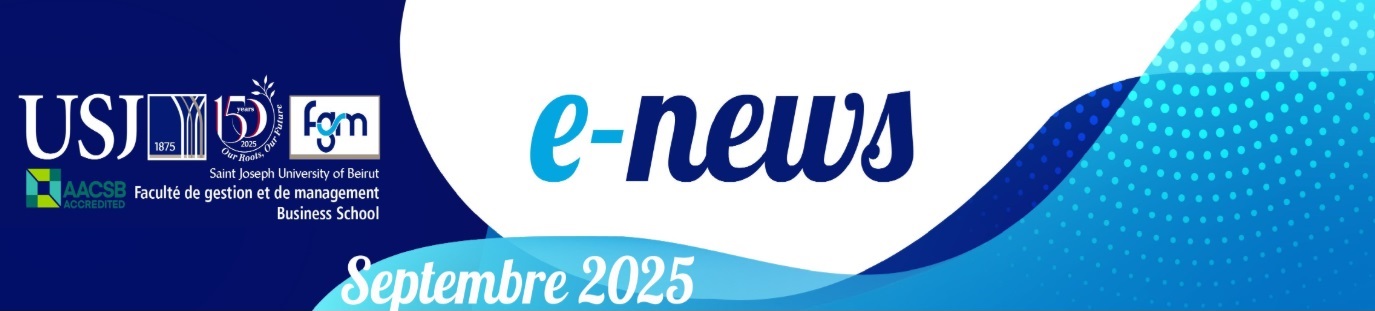 Dans sa "FGM e-news" de septembre 2025, la Faculté de gestion et de management (FGM) de l'USJ vous offre un aperçu des dernières actualités de la Faculté, des récentes collaborations et accords signés, ainsi que bien d'autres contenus passionnants.