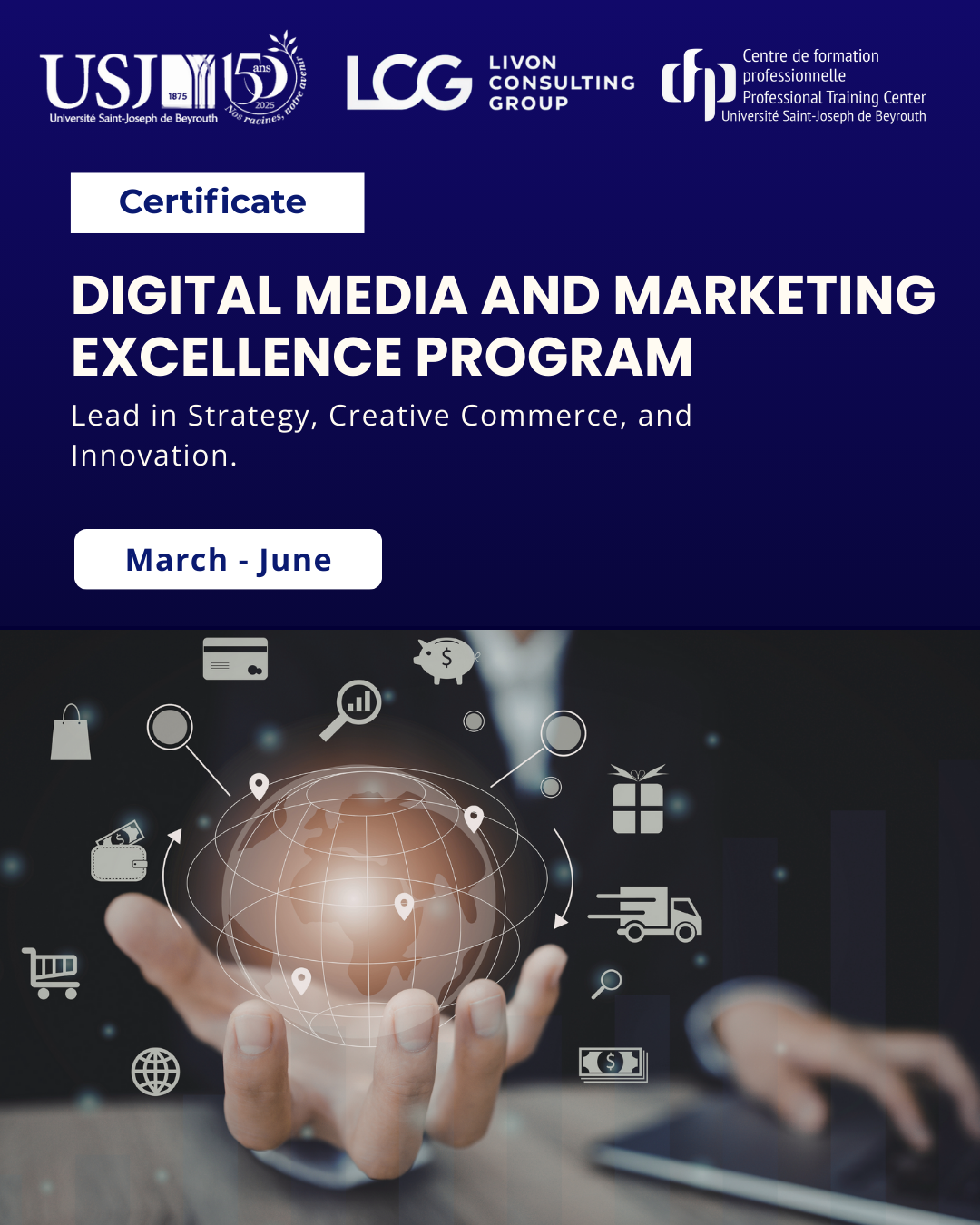 Explore the world of digital media and marketing through a practice-driven program that blends strategy, creative commerce, and data to design impactful campaigns and drive measurable results. The program runs from March 9, 2026, till June 8, 2026, from 5:30 to 8:30 pm.